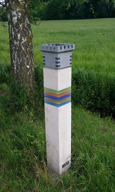 Vor Ort steht außerdem eine Stele, die den Übergang einer Etappe in den Ort, hier Mindelheim, kennzeichnen soll.