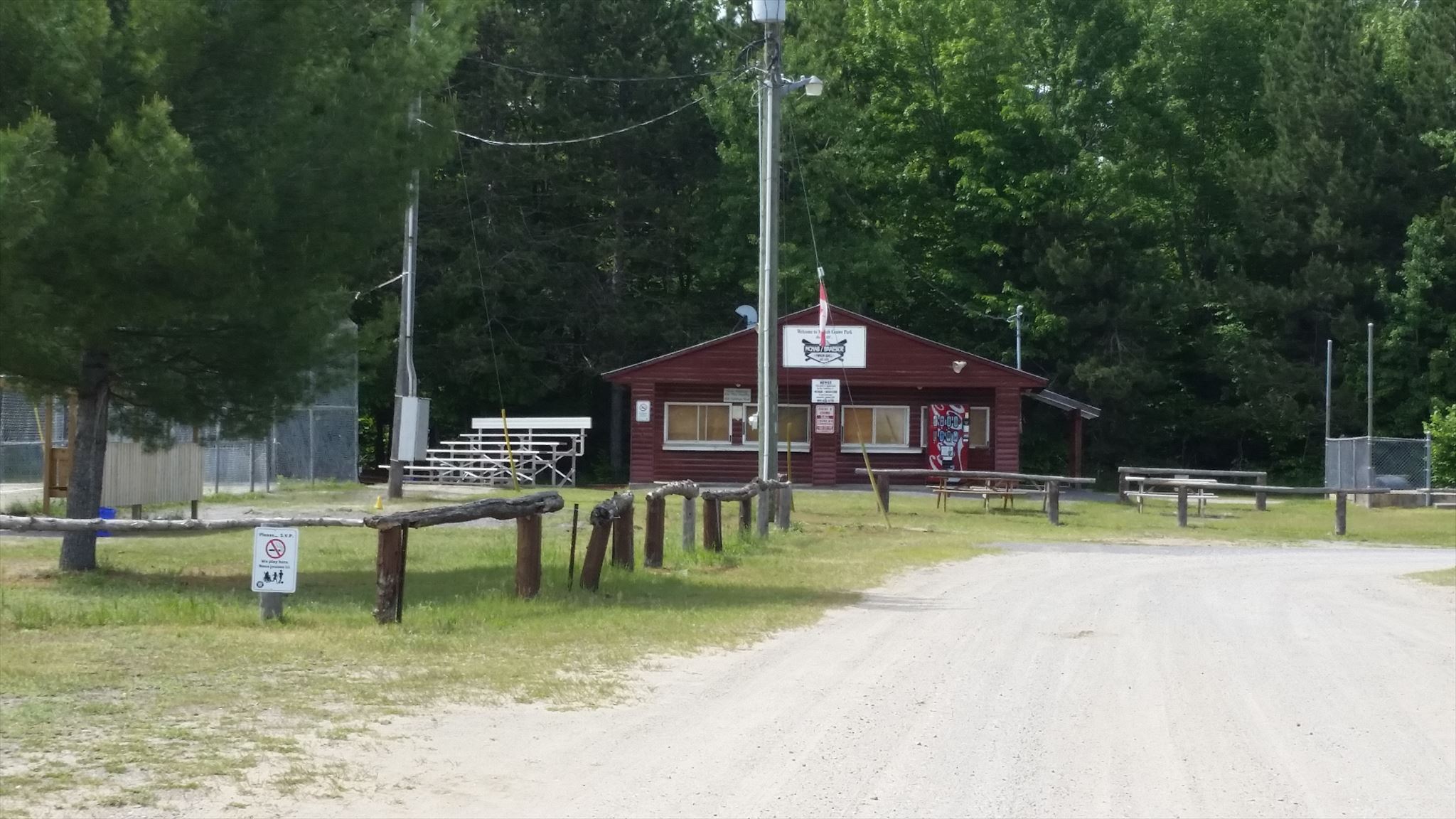 This cache is located in the area of McNab Centre park. As you can see from the pictures this is a big park used for McNab/Braeside minor ball. There are a numer of baseball diamonds here, a canteen building- with bathrooms and a nice big park with a play structure in the corner and some picnic tables. The park is located in the township of McNab-Braeside (just outside of Arnprior) also close by to Burnstown beach (for those you like to swim in the summer). You will find people enjoying the park at all times throughout the day- especially during the evenings and on weekends during the late spring, summer and fall when baseball is being played, so stealth will be necessary when searching for this cache.The park can be accessed from the Calabogie Road. You are looking for a lock n lock container so there is room in the cache for small items and it contains a logbook and a pencil.