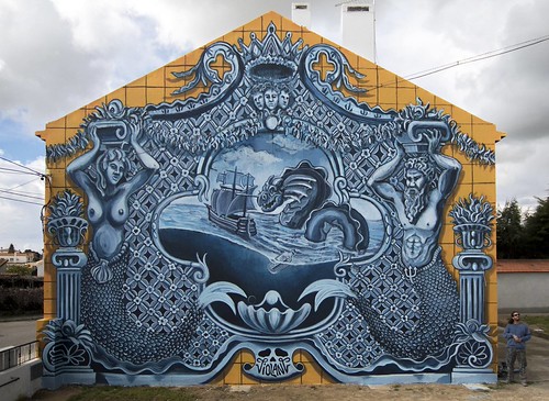(...) Violant concebeu um desenho que resulta de uma conjugação dos tradicionais painéis de azulejo com a linguagem da moderna arte urbana. O resultado é um enorme painel de azulejos, emoldurado por uma poderosa deusa do amor Afrodite e pelo deus dos mares Neptuno; ao centro vemos uma nau seiscentista portuguesa sob o ataque de um monstro marinho. O desfecho da cena antevê-se na mensagem deixada na garrafa pelo naufrágio.