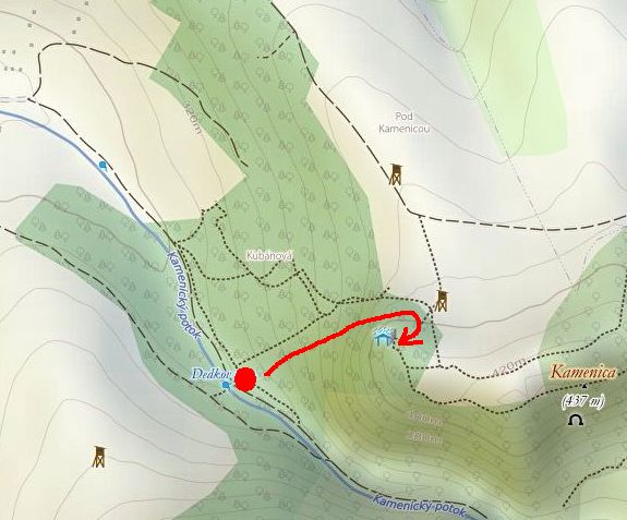 Alternatívny (kratší) prístup je chodníčkom cez les od waypointu T0. K nemu môžete dôjsť z parkingu pešo, prípadne ak nemusíte šetriť geovozidlo, doveziete sa tam po spevnenej lesnej ceste a zaparkujete na kraji cesty. Vstup na chodníček do lesa je nenápadný, ale ďalej už vedie jasne viditeľná čiara chodníka rovno hore.