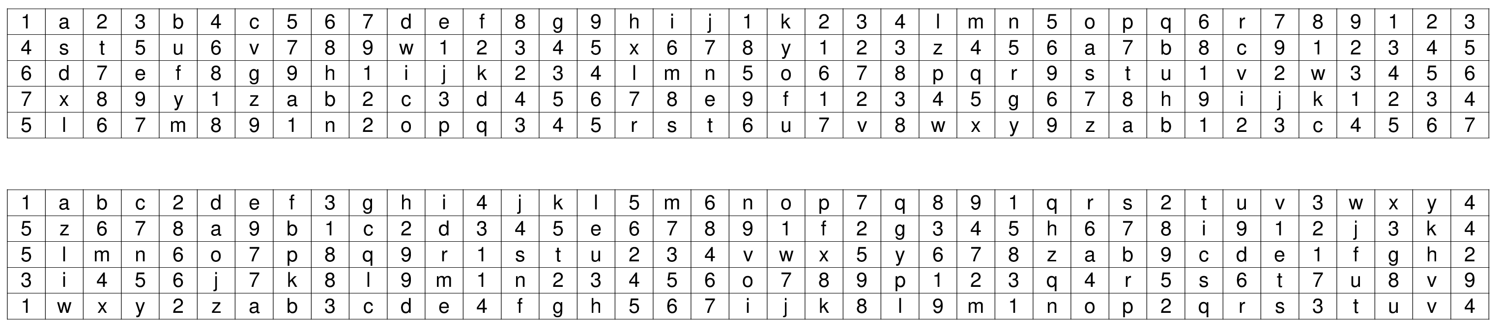 (letter above equals below, and vice versa)