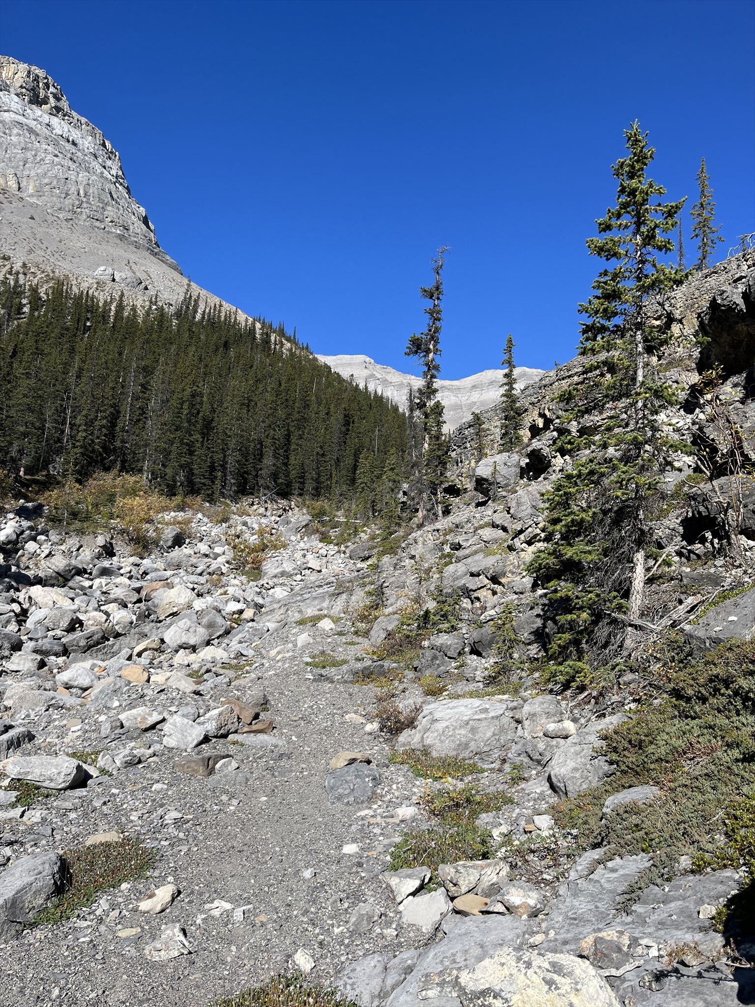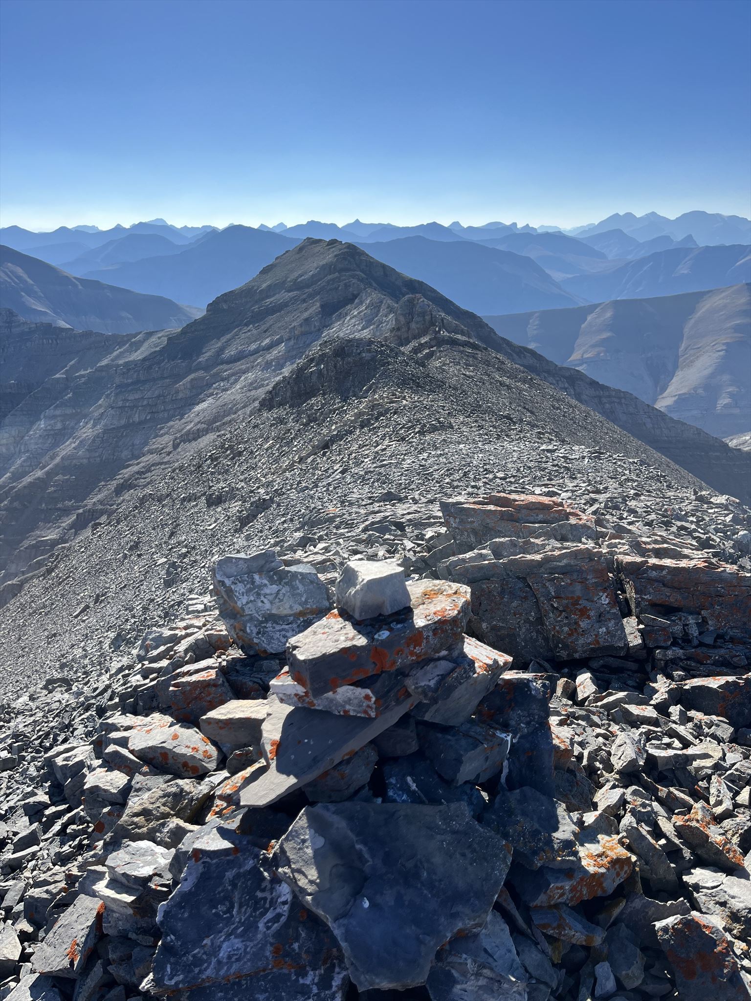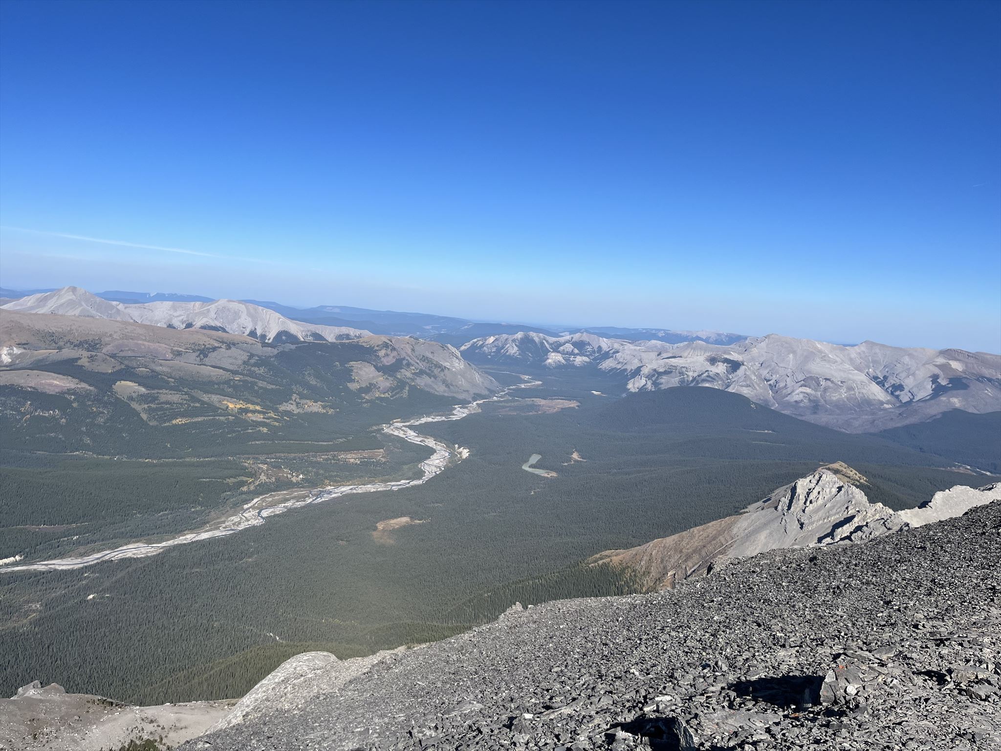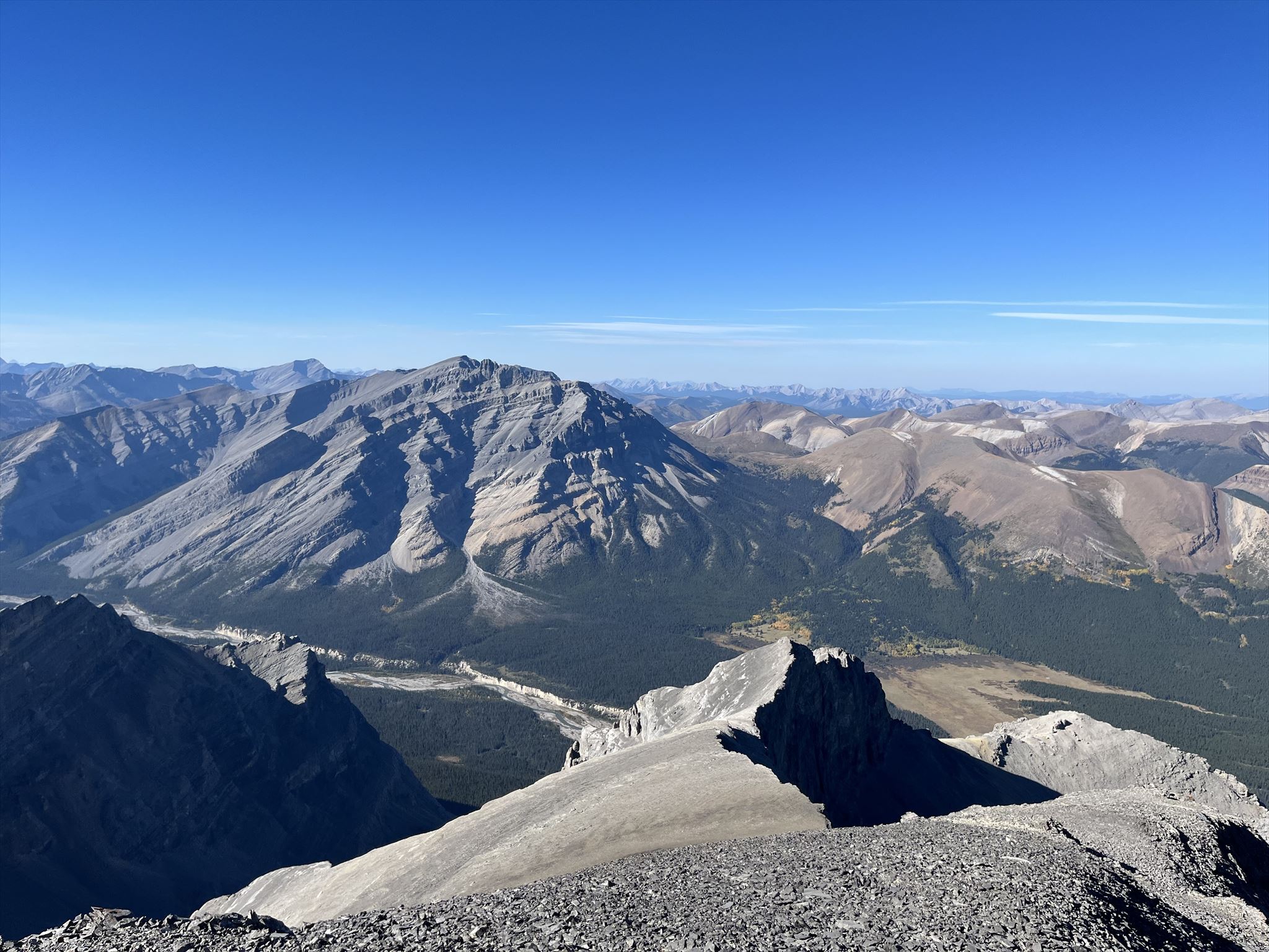 If you plan on checking out these two rather distant summits be sure to take adequate food, hydration (plenty of water sources along the way until three km before the Forbidden drainage) and of course the bear spray.