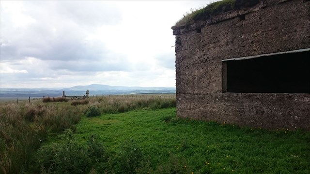 Seen for miles around the hut on Seat Hill. This was a firing range and this concrete shed was the shelter used by the markers. It is now used by the sheep.