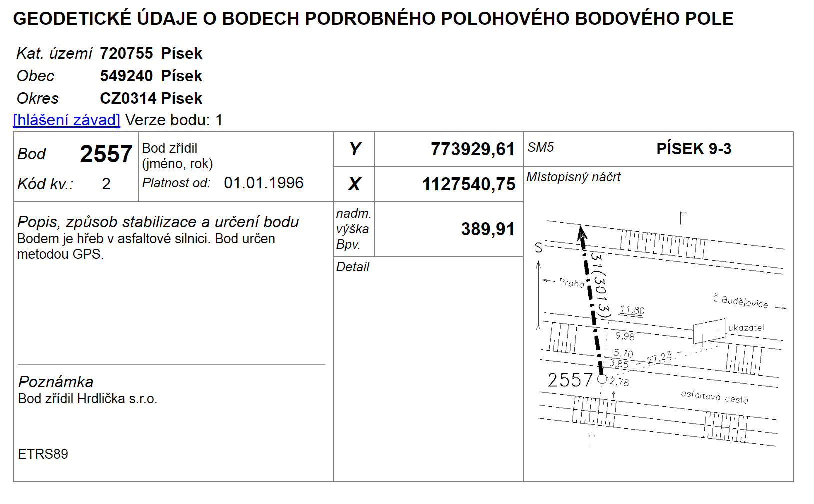 Geodetické souřadnice mají jiný formát než GPS souřadnice, které zadáváte do telefonu např. při hledání keší, ale systém je prakticky stejný. Souřadnice Y a X určují polohu a souřadnice Z nadm. výšku. To jen pro vysvětlení.