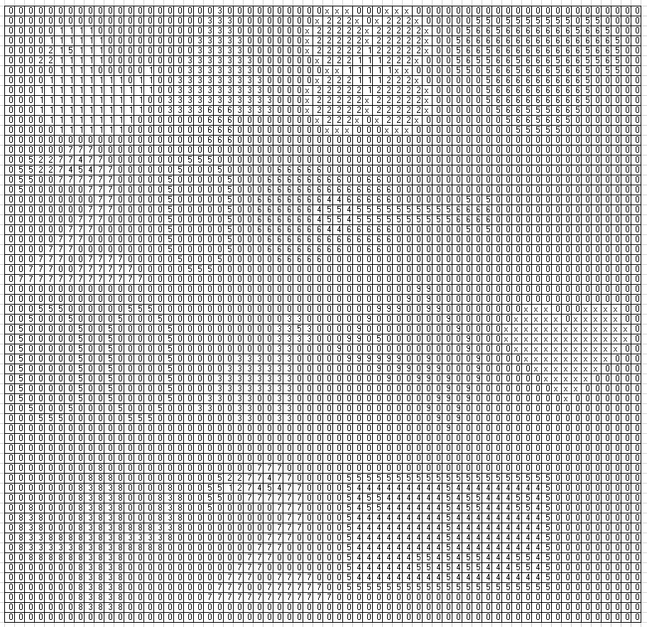 "Dit zijn coördinaten, op al die punten zul je een object vinden in een bepaalde kleur."
