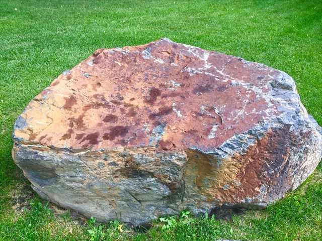 The rocks in the Garden are representative of those found in central and western Canada and come from 3 of Canada’s geological regions: the Canadian Shield, the Western Canada Sedimentary Basin, which is part of the Interior Platform, and the Cordillera. The Canadian Shield covers the central and eastern portions of Canada and is made up of some of the oldest rocks on Earth. The rocks vary in age from 1 billion to upwards of 4 billion years old. Located on the eastern side of the Geoscience Garden, the rocks representing the Canadian Shield are mostly igneous and metamorphic. Igneous rock is formed by lava or molten rock cooling and solidifying. Molten rock, or magma, can solidify underground and then be exposed later (granite is a good example of this) or lava can erupt and cool on the Earth’s surface. Metamorphic rocks go through physical and/or chemical change due to extreme heat and pressure. For example, marble can be formed from limestone and slate.