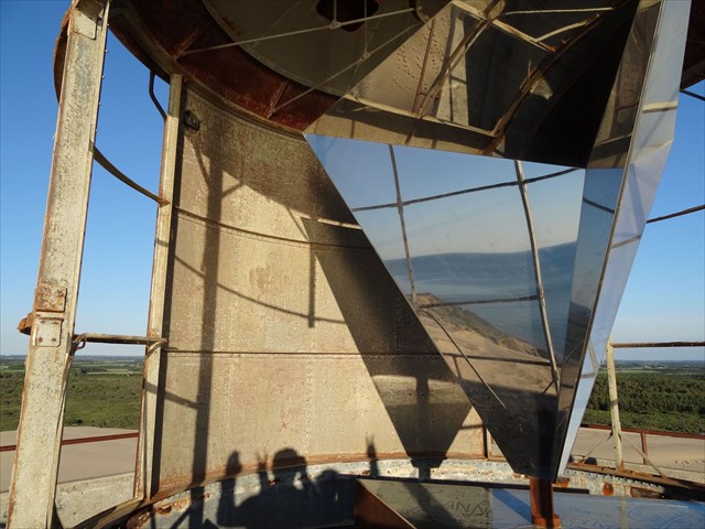 The dune actually moves direction northeast and flattens itself with the years. The dune has passed the lighthouse almost completely. From the surrounding buildings are only single bricks left over as well as a small concrete wall that had been built for protection against the sand masses. The tower itself will fall down the coast probably within the next 8-10 years, as the coastal erosion has doubled in recent years and now stands at around five meters a year.
