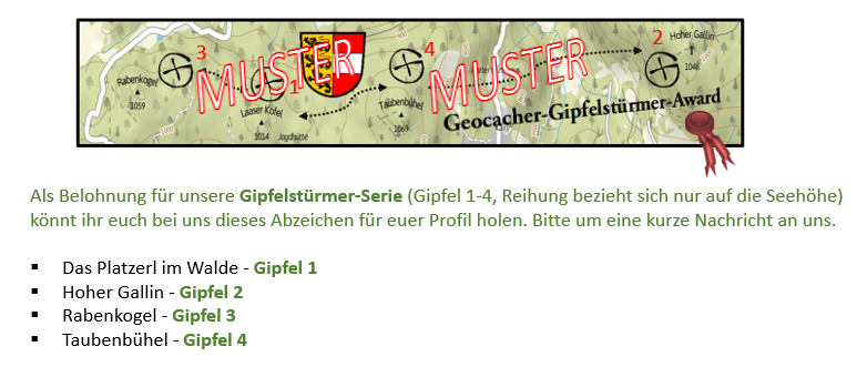 Für die Gipfelstürmer unter den Cachern haben wir eine kleine Dose in herrlicher Naturkulisse am Hohen Gallin gelegt, der mit seinen 1.046 m neben dem Taubenbühel (1.069 m, Glan-Ursprung) zu den höchsten Erhebungen im Bereich des Wörthersees zählt.