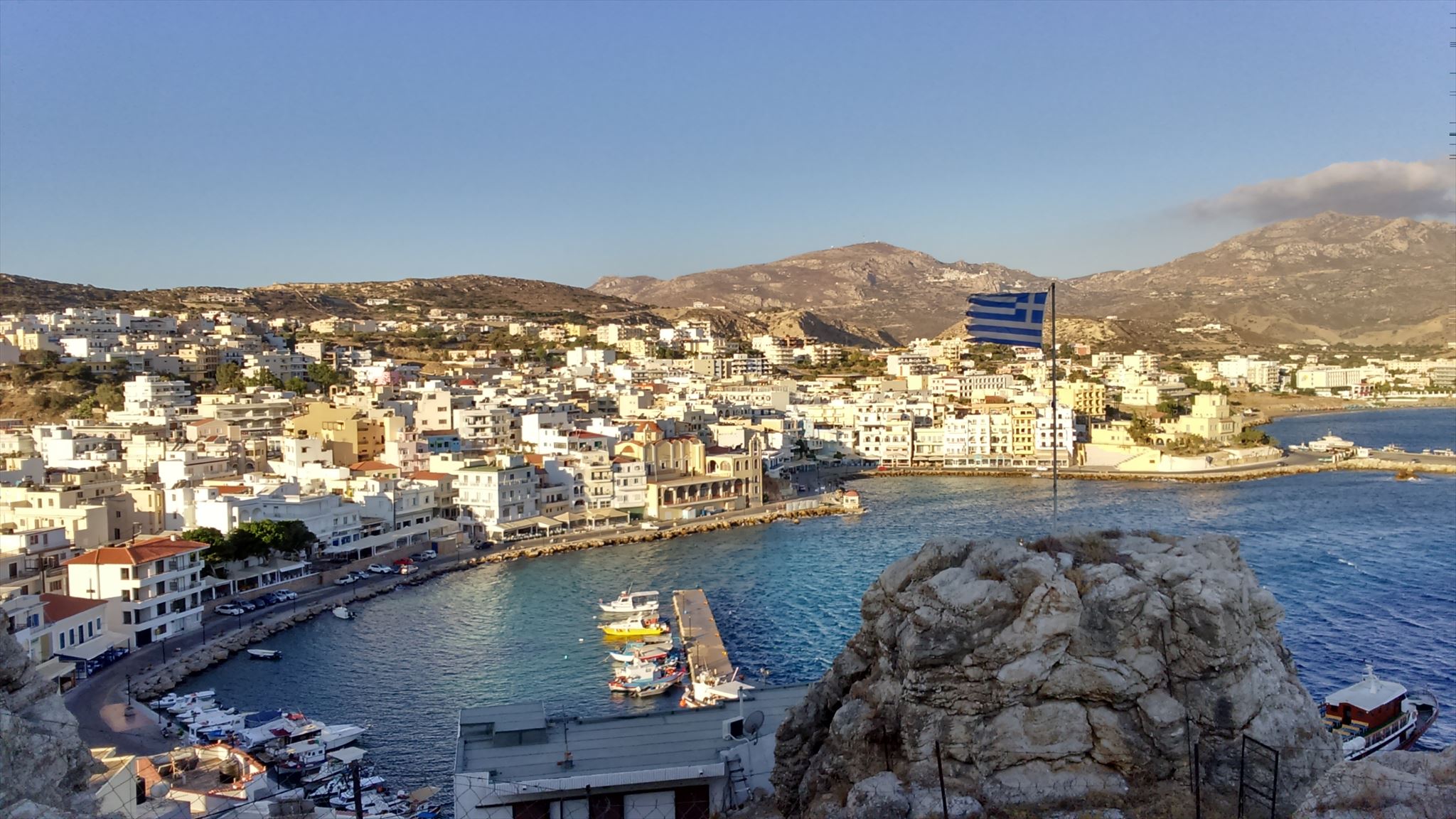 The Minoan Acropolis was possibly built on the rocky hill. Following an uphill newly-built road and passing through a mountainside full of pine trees one will reach the chapel of Panagia Larniotissa. From this place the visitor will enjoy the magnificent view of the port, the whole town of Pigadia, the bay of Vrontis with the long beach and at the backround the mountain villages.