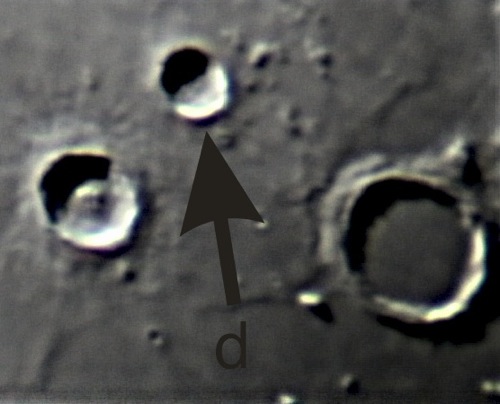 Um die Dezimalstellen uvw und xyz der Koordinaten herauszufinden, müssen 5 Krater (a bis e) und ein Mare (f) identifiziert werden. Aus den Namen lässt sich eine Ziffer nach üblichem Muster berechnen.