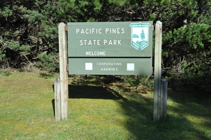 Pacific Pines was originally slated to be a private residential development on the coast, but was transferred to the State Park system to allow a permanent public access point to the beach. Pacific Pines State Park offers a restroom facility, ample parking and a few picnic tables, along with a rustic trail to the beach. Dogs are welcome on leash!