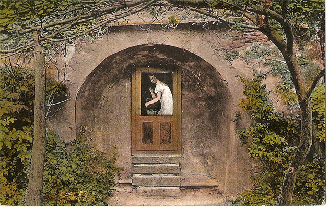 The story about Juliana Korponay was surviving in telling stories above all in Levoča. After around one hundred years it happened that Adam Probstner, Levoča citizen, revived it. Adam Probstner came from an entrepreneurial and culture-based family (the main road is named after the family). He allowed to paint her Romantic image by famous Levoča artist Joseph Czauczik. He placed it on a strange place- in the small wooden door of the city walls and could see it from the first floor of his mansion/residence near to the main road (which is currently a piece of the Levoča hospital) but you will see it from the sidewalk only as a piece of arch. If Adam allowed to paint the painting, then he had to believe in the legend about the woman who betrayed Levoča. There is a figure of a pretty woman in long white dress and red drapery on shoulders in the paiting. By the way, white dress was in fashion then. A fun fact: One of her arms is directed to a lock but she doesn't hold any key in her hand.