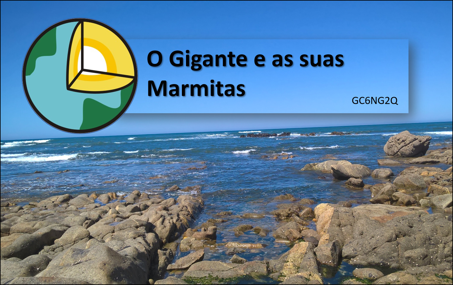 5) Dirija-se às coordenadas do WP1, onde há outra marmita de maior profundidade e que se conecta, em períodos de maré alta, ao Gigante Atlântico. Inclua uma foto no seu registo em que sejam visíveis as rochas moedoras presentes no fundo. No caso de não ser selfie, basta ser uma foto da sua mão a segurar um papel com o nick. É considerada obviamente uma foto por geocacher/registo e registos sem foto não serão validados.