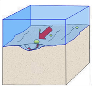 4) Há mais rochas moedoras no fundo da marmita. Estime o seu tamanho médio e, segundo a escala de de Wentworth, classifique os detritos. Há mais do que uma classificação. O que é mais liso: a textura dessas rochas ou a face interna da marmita?