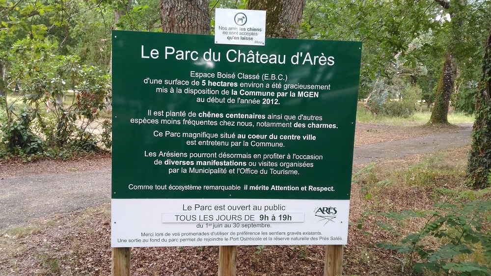 *** Cette magnifique chênaie est ouverte au public du 1er juin au 30 septembre de 9h à 19h. Ne pas sauter par dessus la barrière pour trouver la cache. Les logs notés en dehors des dates d'ouverture seront systématiquement effacés.*** Arès est devenu une baronnie en 1601 après avoir été une possession des seigneurs de Blanquefort. Le château a traversé les époques en subissant de multiples transformations. Transformé en EHPAD, il est actuellement la propriété de la MGEN. Le parc a récemment été cédé à la ville d'Arès