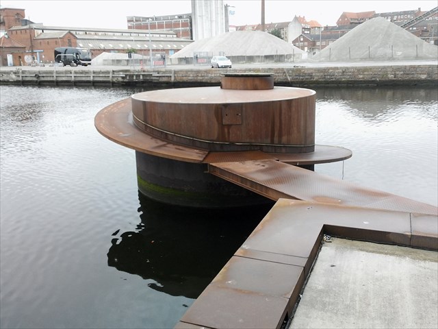 Jeg har længe undret mig over hvad denne platform var til, indtil jeg for nylig fik et hint til, at den var til at søsætte kanoer og kajakker med. Jeg har dog aldrig set den i brug. De gange der har været arrangementer på havnen med kajakker, som jeg har overværet, er de altid blevet søsat fra trappen ned til havnebadet.