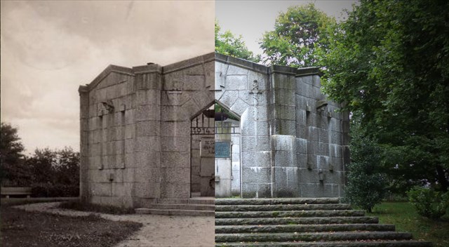 Abseits, zwischen Festplatz und "Heinrich-Villa", auf einem vom Granitwerksbesitzer Carl Netzsch der Stadt geschenkten Gelände, entstand in den Jahren 1928/1929 das bis heute kaum veränderte Denkmal, nach Plänen des Architekten Konrad Kühnlein. Kühnlein hatte bereits zu Beginn der 20er Jahre im Auftrag der Firma Heinrich Arbeiterwohnungen geplant. Zur Ausführung des Denkmals hatten sich Selber Honoratioren zum Verein "Verein zur Errichtung eines Denkmals für die im Weltkrieg gefallenen Söhne der Stadt Selb" zusammengeschlossen und das ehrgeizige Projekt zielstrebig vorangetrieben.