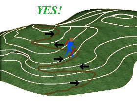 A switchback is a trail up a steep hill or mountain that is like a zig-zag pattern instead of a straight trail. The zig-zag pattern protects the hill and the trail from excessive erosion.
