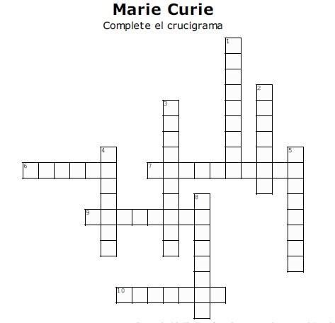 Las palabras a incluir en el crucigrama proceden de los siguientes datos sobre la vida de esta gran científica cuyo orden no corresponde al número indicado en las casillas del crucigrama: