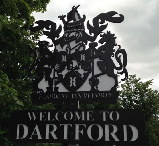 The Dartford sign is on a very busy road and you will be unable to stop there but you will most probably pass it. I have added coordinates for safe parking and so you will be able to walk to the information required for stage 1.