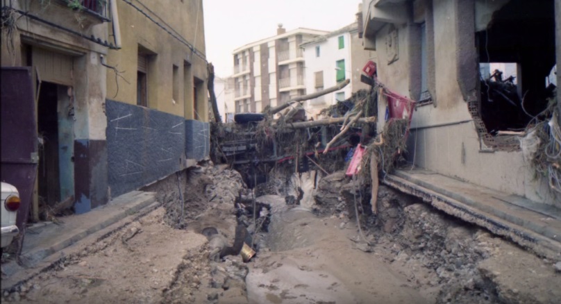 Eran sobre las cuatro de la tarde del 20 de octubre cuando el agua empezó a rebosar por encima del puente de “la Pasarela” provocando el desplome originando un río de lodo de más de dos metros de altura que arrastró miles de toneladas de tierra, fango y árboles a su paso, llevándose todo lo que se interpuso en su camino.