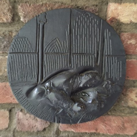 1925 entstand St. Laurentius als Rektoratsgemeinde der Universität, die sich vier Jahrzehnte lang in der Kapelle des St. Hildegardis-Krankenhauses traf. 1961 wurde der Grundstein für den neuen Kirchenbau gelegt, den Ihr auf der rechten Seite des Eingangs mit Gittern geschützt sehen könnt: „Christus caput anguli – Christus ist der Eckstein“ (-> Bibelstelle Eph 2,20 und Psalm 118,22) steht über der Jahreszahl.