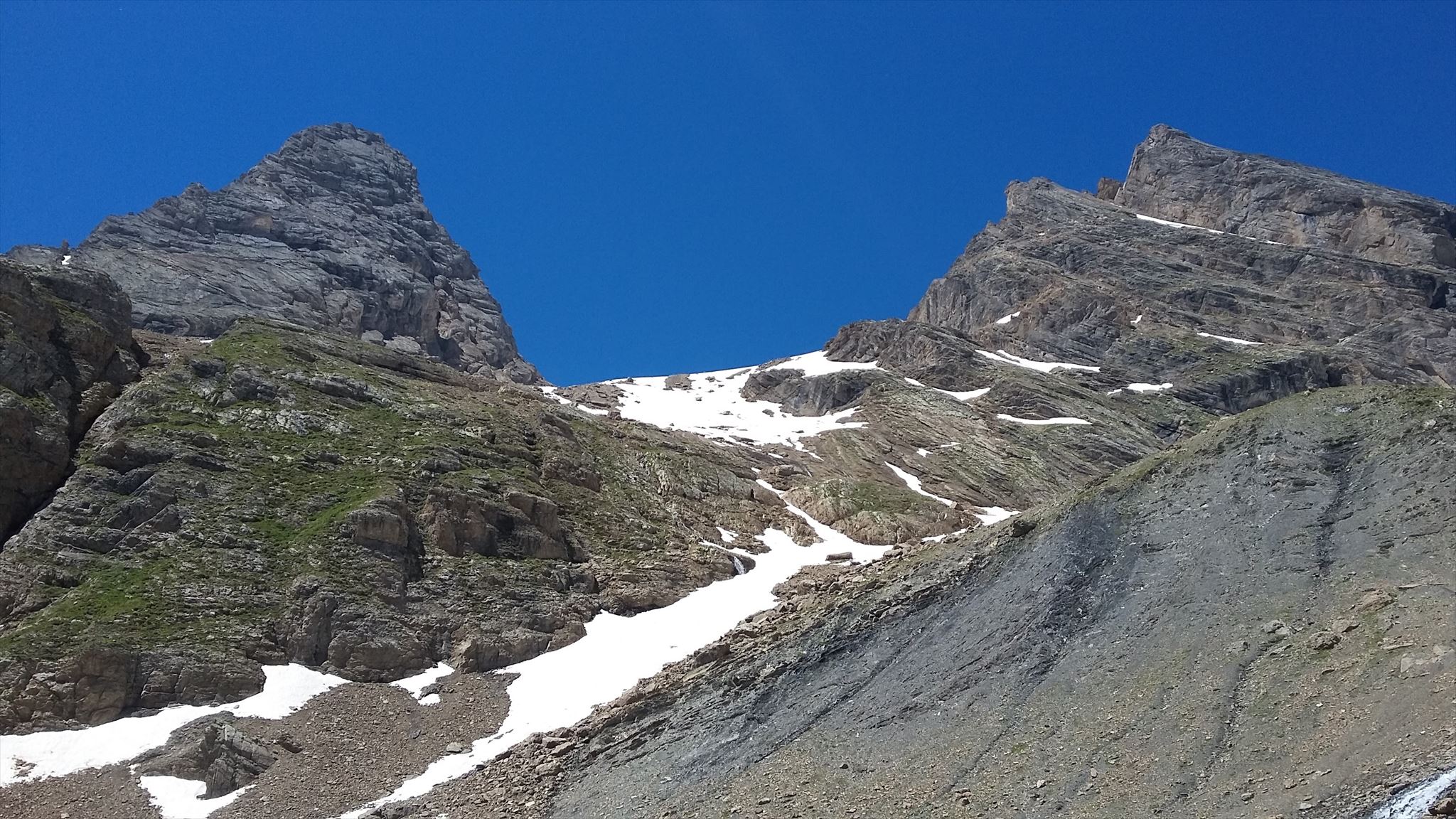 Une fois le refuge atteint et après une bonne pause. Il faut poursuivre l'exploration du vallon en empruntant le sentier qui descend légèrement en main gauche. Le suivre, il est bien marqué et s'aider éventuellement des cairns (ramas de pierre artificiel). La cache a trouvé refuge dès que les aiguilles et le col qui les sépare sont en vue !