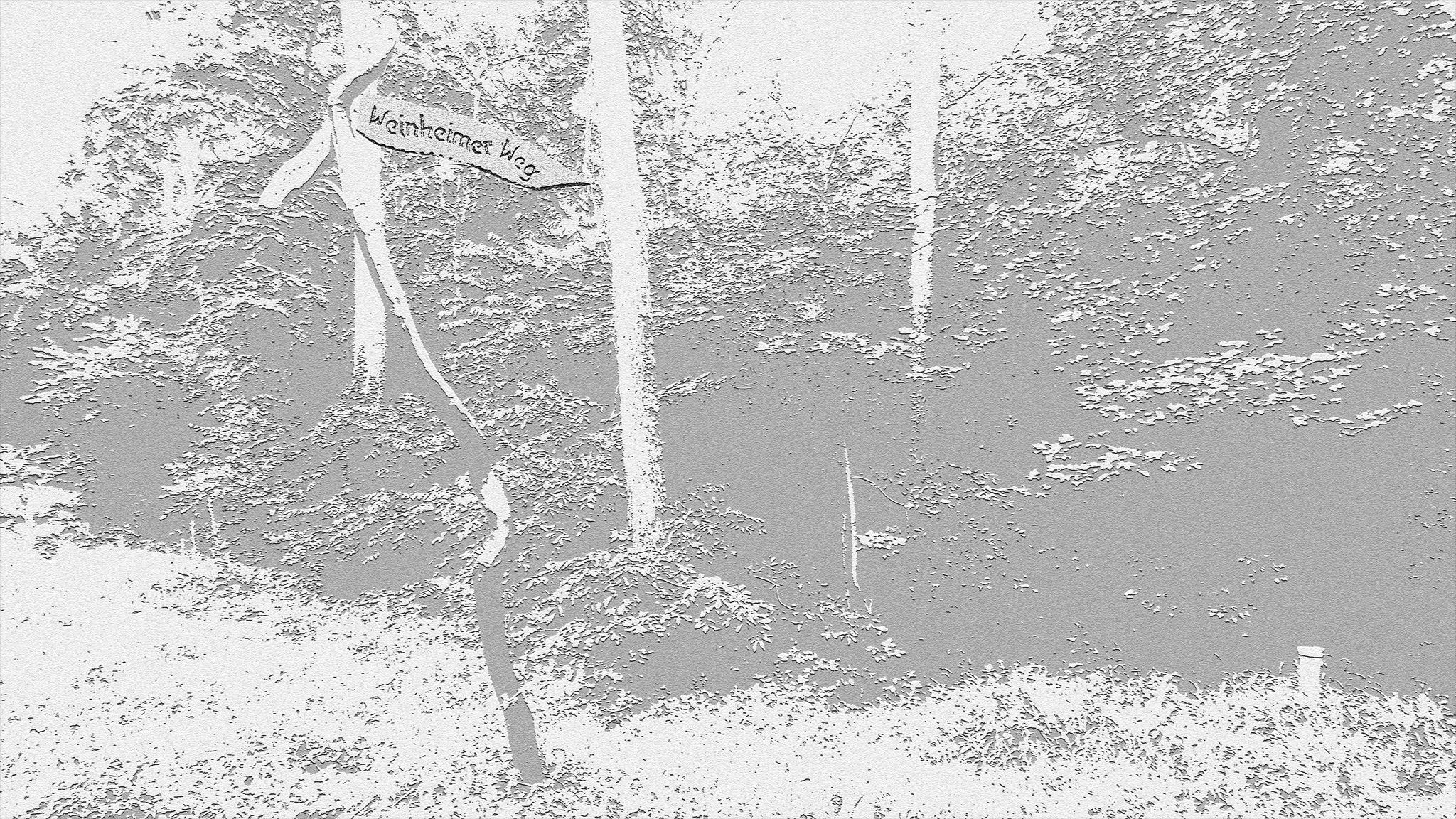 Wann der "Weinheimer Weg" hier im Käfertaler Wald seinen Namen erhielt, ist leider nicht bekannt. Offiziell ist er seit 1963 unter dem Namen "Gorxheimer Straße" geführt (Straßennamenkartei FB 62). Eigenartig - denn auf allen Stadtkarten, die ich finden konnte, befindet sich diese an ganz anderer Stelle. Sei's drum ...