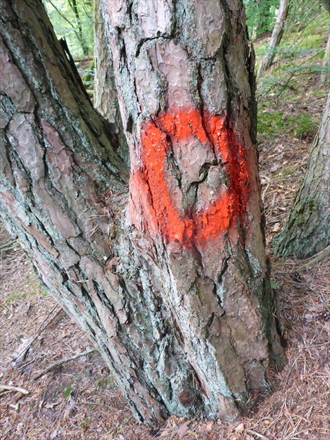 When you see two trees on the top of the rock with mark like on the photo, you have to have to go down exactly between them. You find the cache while standing, not hanging!