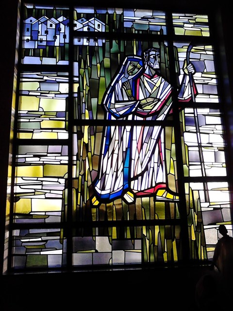 Besonders die Glasfenster gefallen mir sehr in St. Marien. Das große ganz vorne links ist dabei das beeindruckendste. Ein Mann und eine Frau sind darauf unterwegs. Maria und Josef auf der Flucht nach Ägypten, denn König Herodes wollte alle kleinen Kinder und damit auch den gerade geborenen Jesus töten lassen.