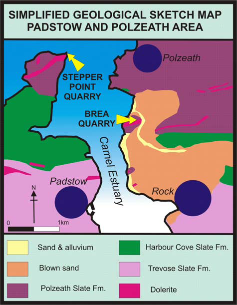Other rocks here are also Sedimentary bedrock, formed 359-385 million years ago. This was during the Devonian period. These are referred to as Polzeath Slate Formation, a mixture of mudstone, siltstone and sandstone.