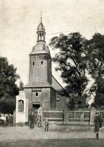 Na zdjęciach powyżej i obok drewniany kościół w Dąbrówce Kościelnej zbudowany w 1777 roku przez archidiakona gnieźnieńskiego Leona Morawskiego, który spłonął doszczętnie w nocy z 9 na 10 października 1925 r. Na jego miejscu w latach międzywojennych XX w. rozpoczęto budowę obecnej świątyni.