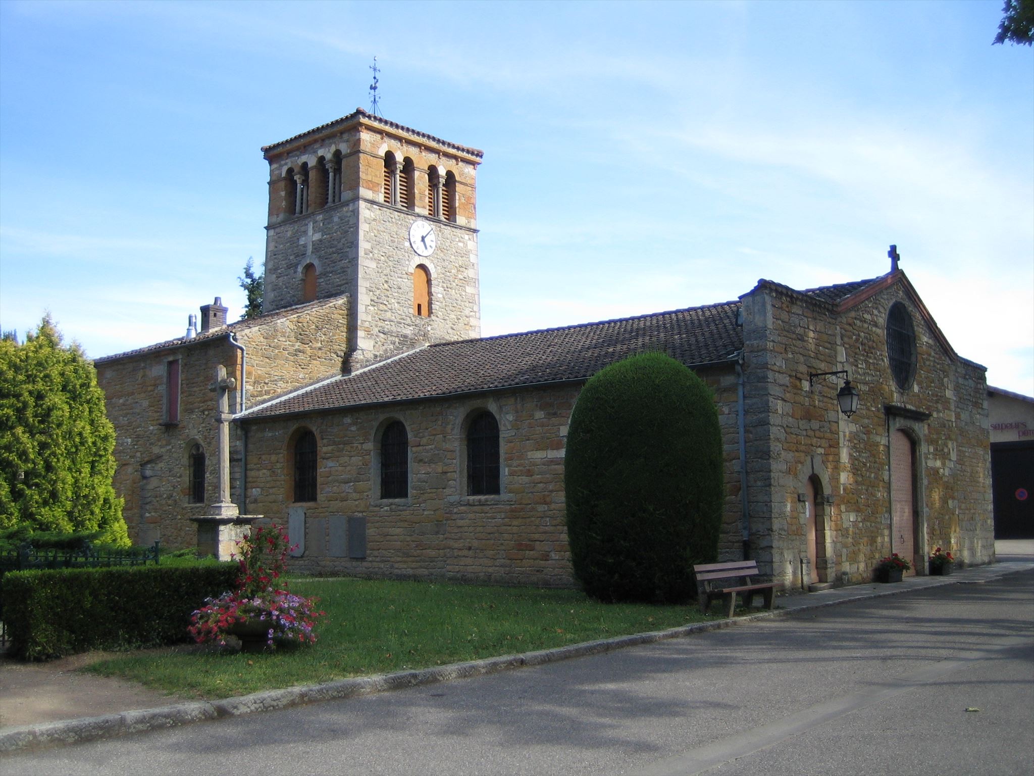Eglise Notre Dame de Fontaines à Cailloux-sur-Fontaines Chapelle romane, le clocher date du XI° siècle. Les bras du transept ont été repris au XV° siècle. Tombée par la suite en poussière, elle sera remplacée au XVII° siècle par celle que nous voyons encore. Le clocher contient alors deux cloches dont l'une fondue en 1488. L'église sera encore agrandie de 1811 à 1822. En 1812, deux cloches seront ajoutées à la rescapée de la Révolution. Après la canonisation de Saint Roch (1414) qui fait suite à son action héroïque durant la peste de 1349, une statue du Saint est installée dans l'Eglise. Elle fait partie de la paroisse Saint Roch en Val de Saône.