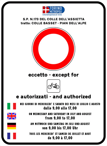 The road is almost entirely above 2000 metres altitude and so is only open from June 1 to October 31. It runs along the ridge that separates the Val Chisone and Susa valley and passes several mountain passesbetween these valleys including Colle dell'Assietta (2,474 m), Colle Blegier (2,381 m), Colle Costa Piana (2313 m), Colle Bourget ( 2,299 m) and Col Basset (2,424 m).