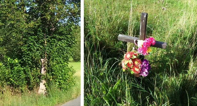 Křížek se mi povedlo objevit náhodou, je hodně schovaný v mladých lipových větvích, kterými obrůstá starý lípa, u níž stojí… Několik desítek metrů směrem k obci Srby je další nový křížek, zřejmě po oběti dopravní nehody, O křížku se mi nepodařilo zjistit nic bližšího, za každou informaci jsem vděčný...