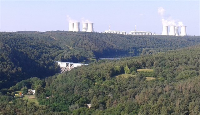 Na úvodních souřadnicích můžete zanechat své geovozidlo Stojíte u vjezdu do areálu vodní elektrárny Mohelno.