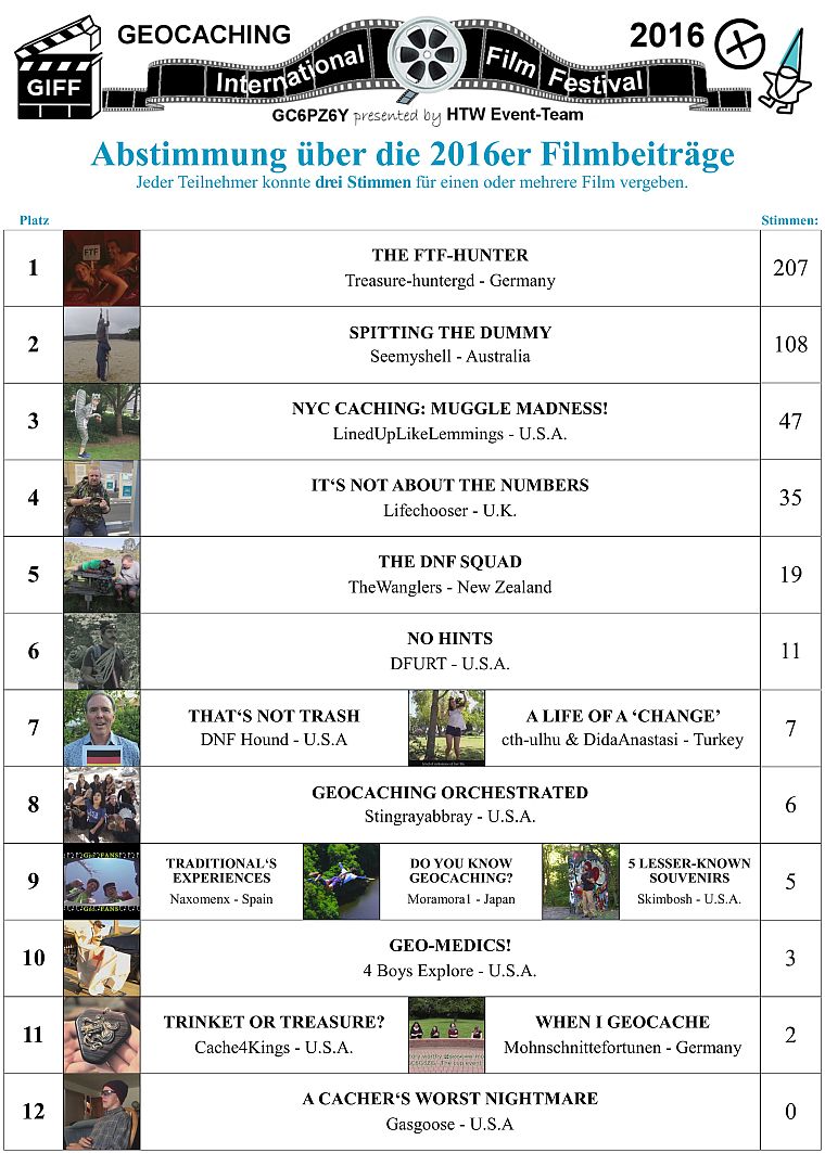 Es ist so weit, das Geocaching International Film Festival (GIFF) erreicht seinen Höhepunkt.