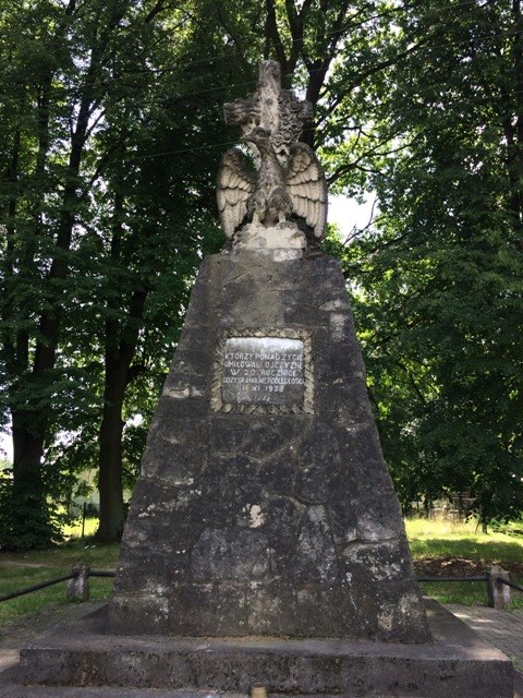 Nieopodal dworu ,tuż przy drodze stoi pomnik poległych w I wojnie światowej .Wzniesiono go 11.XI. 1938 r w dwudziestą rocznicę zakończenia wojny . Corocznie, w dniu Narodowego Święta Niepodległości po uroczystej mszy odbywa się tu przemarsz w asyście harcerzy .Uroczystość pod pomnikiem rozpoczyna się od wciągnięcia Flagi na maszt i odegraniu hymnu narodowego .Harcerze składają tutaj wiązanki kwiatów w narodowych barwach i zapalają znicze .W ten sposób oddają oni hołd i czczą pamięć wszystkich pokoleń walczących o wolną Polskę .