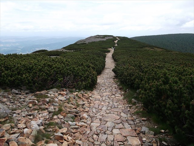 Po občerstvení se připravte na 9 km asfaltového stoupání zpět na hřebeny Krkonoš. Nejprve kolem desítky Mumlavských vodopádů. Asfaltka začne opravdu výrazně stoupat až na Voseckou boudu. Kousek nad ní na Tvarožníku začíná hlavní Krkonošská hřebenovka Cesta Česko-polského přátelství. Legendární hřebenovka kličkuje po obou stranách hranice. Místy zachází až kilometr do vnitrozemí obou států. Kamenitá stezka nás povede těsně pod Vysokým Kolem 1506 m.n.m (nejvyšší bod Libereckého kraje) přes Mužské a Dívčí kameny. Stále nahoru dolu. Okolo zbytků vyhořelé Petrovy boudy seběhneme na asfaltku. Po ní už je kousek na Vojenskou zotavovnu Malý Šišák u Špindlerovky (52 km).