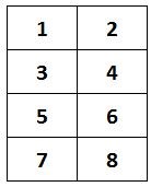In order to find the cache, Read the large sign at the published coordinates. On the sign you will find (besides a company name) 8 descriptions of various components, placed in 2 columns of four rows. Consider these as blocks 1 - 8, as per the diagram below (Left to Right, then top to bottom)