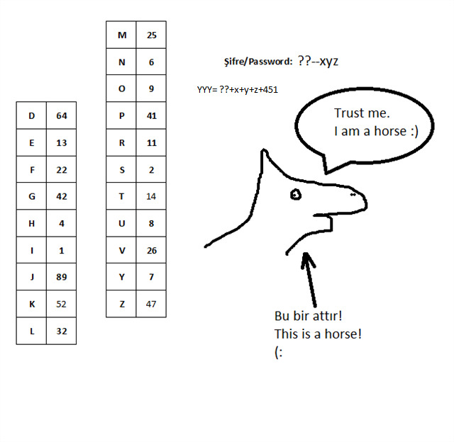 Öncelikle kendi tablonuzu oluşturarak aşağıdaki bilgileri değerlendirip şifreyi cözmek ve diğer bilgileri toplayarak son aşamaya ulaşmak zorundasınız.