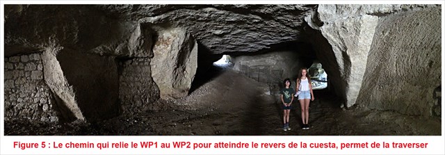 Le chemin traverse la cuesta (Fig.5) et permet d’atteindre son revers. En remontant, on passe par le Waypoint 2 qui permet d’observer les roches qui composent la cuesta.