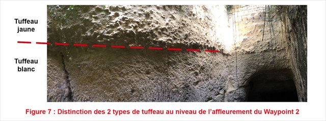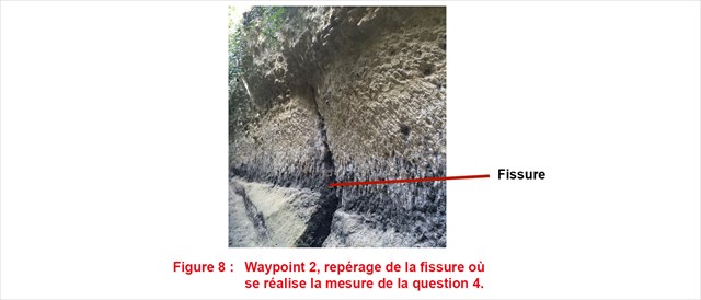 4) Using a tape measure at the outcrop of Waypoint 2, measure the thickness of White Tuffeau at the crack ("fissure" on Fig.8).