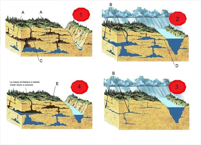 2) Expliquez le formation de la grotte en énumérant l'ordre