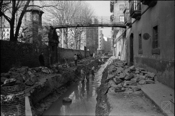 El río Zapardiel, en el subsuelo, y por encima el ya desaparecido Puente de La Marquesa.