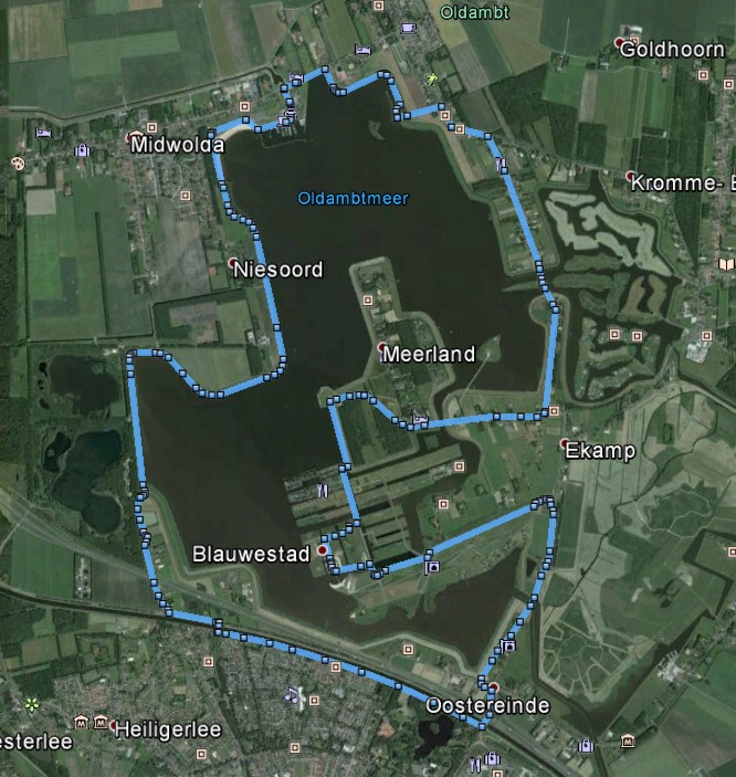 Die Strecke führt über den Winschoterdiep, ein Stück entlang der N967 bis Ihr dann in Richtung zur Blauen Stadt abbiegt. Hier gibt es die Möglichkeit beim Aussichtsturm einen Blick über das Oldambtmeer zu werfen. Weiter geht es in Richtung Oostwold/Midwolda zum Nordstrand. Hier bietet sich eine gute Gelegenheit eine kurze Pause einzulegen, sich zu stärken und die Möglichkeit kostenlos Toiletten aufzusuchen. Über die Ostseite geht es entlang des Radwege zurück. Die A7 wird überquert und die letzten Kilometer, entlang des Winschoterdiep liegt das Ziel auch schon in greifbarer Nähe.