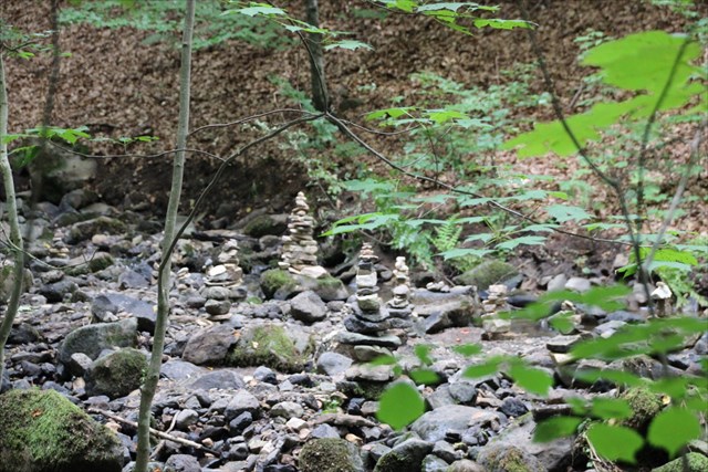 Anhand des Buntsandsteins und der Kaskadenschlucht kann man sich, zumindest ein kleines Stück, auch den Kreislauf der Gesteine vergegenwärtigen. Die damaligen Berge wurden durch Verwitterung abgetragen und das Material wieder als Sediment (Lockergestein) abgelagert durch anwachsen der Schichten und dem daher erhöhten Druck (Versenkung und Diagenese) wurde aus dem lockeren Sediment Festgestein. Dieses Festgestein wurde durch Hebungen und Druck umgelagert was man heute noch schön an den Aufschlüssen in der Schlucht und den verschiedenen Winkeln der Schichten sehen kann. Der weitere Kreislauf ist anhand der vulkanischen Aktivitäten in der Rhön auch recht gut zu beschreiben. Das wäre die Umwandlung durch Temperatur und Druck zu Metamorphit und dann einer Aufschmelzung zu Magma welches durch Vulkanausbrüche an die Oberfläche gelangte und dort abkühlte. Dieses abgekühlte Gestein bildete hier dann die Kuppenrhön welche nun wieder der Verwitterung ausgesetzt ist. Diese Verwitterung und den Abtransport des Gesteinsmaterials kann man hier vor Ort sehr gut im Bachbett sehen. So schliesst sich der hier nur ganz vereinfacht dargestellte Kreislauf der Gesteine und beginnt wie immer wieder von vorne.