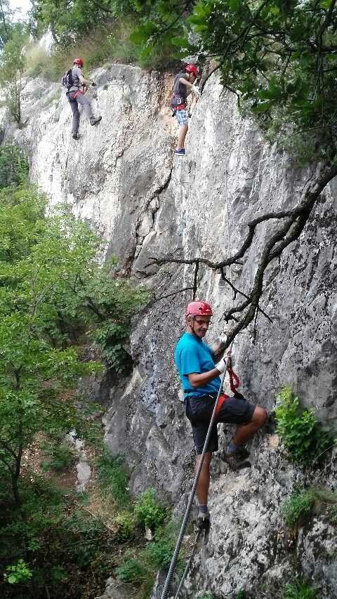 To hike a via ferrata is climbing! Everyone climbs at your own risk. Required equipments: helmet, harness and energy absorbing via ferrata set. The runs on only intermittently provided free to move people up and only pass. The get off the via ferrata strictly prohibited and life-threatening! Only use the designated forest trails to approach! The area is strictly protected natural site.