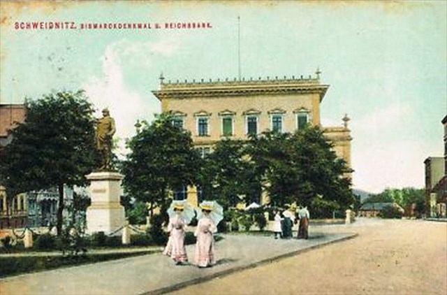 15 marca 1902 roku nastąpiło uroczyste otwarcie Banku Rzeszy (Reischbank). Podczas jego budowy natrafiono na szczątki ludzkie z XIV wieku, co potwierdza istnienie w tym miejscu cmentarza. Gmach budynku banku stoi w miejscu byłego już kościoła Św. Mikołaja. Budynek został wzniesiony według projektu Maxa Hasaka, znanego architekta berlińskiego, specjalizującego się w projektowaniu banków i kościołów. Bank obejmował swą działalnością oprócz miasta Świdnicy, powiaty: świdnicki, strzegomski, wałbrzyski, dzierżoniowski, ząbkowicki, niemczański, noworudzki, kłodzki i bystrzycki.