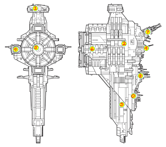 In the figure below, identify the Imperial Superweapon (name mentioned in listing) elements and assign numbers to them.